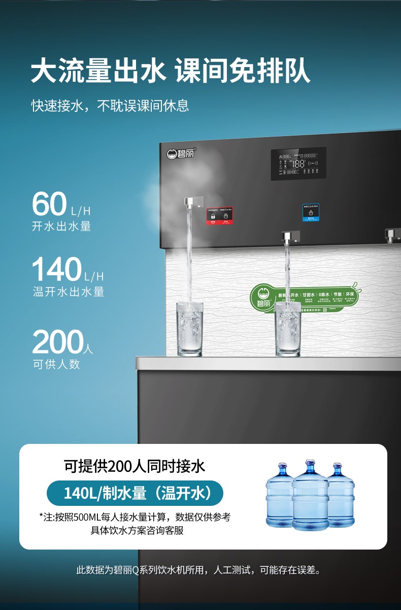 • 供 水 量:開水60升/時(shí),溫開水140升/時(shí)